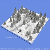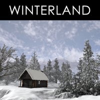 Welcome to Winterland, a DAZ Studio snowy landscape populated with majestic spruces, oaks and bushes.