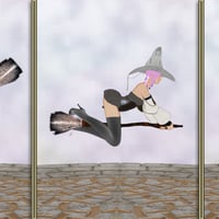 Each pose is infused with charm and whimsy, capturing the playful essence of a cartoon witch as she conjures magic and takes to the skies.