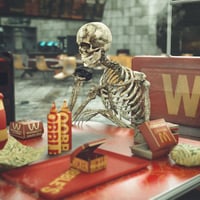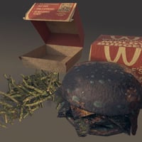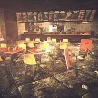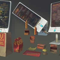over 30 realistic props: moldy burgers, stale fries, soda cups, wrappers, kiosks, trash bins, greasy papers...