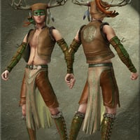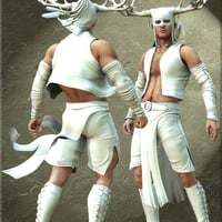 Envision Micheal 4 or Hiro 4 as a sylvan woodland barbarian with the Woodgod clothing and prop set. This set includes a conforming vest, shorts, skirt with belt, loincloth (for use without the shorts) moccasins, and gloves, a smart prop antlered hood with dreadlocks, two torcs, and two weapons. The clothing comes with several movement morphs to lend dynamic impact to your renders, and is richly textured in two different distressed leather tones resplendant with celtic motifs.