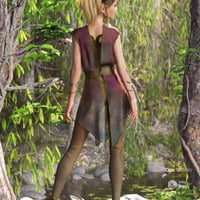 These forest elfin-style clothes for Genesis 8 Female include a Dress, Top, Pants, Boots, Arm Vines and a Tiara so your character can have a mystical, wonderful, or fantastic time in the forest.