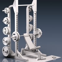 - Weight plates in 45, 35, 25, and 10 pounds each