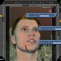 The wound effects positions are controlled directly in the second skin (geometry shells) by surface parameters. This means you don't need to enter multiple times into the layered image editor to move the placement of a wound in a cumbersome 2D texture map, now you can interactively slide its position directly in the character skin by using the HORIZONTAL OFFSET and VERTICAL OFFSET sliders of the shell in the Surface Tab. This makes the correct positioning of wounds much faster and exact.