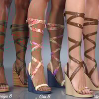 Wrap Wedges includes your new favorite shoes, Foot Pose, 20 Full Iray Presets and multiple options for material zones.