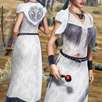 The Bride's Maids will have nothing to envy with a similar outfit, this one trimmed with blue and including matching accessories like the shoulder scarf with two lovebirds embroidered on the back. This set will be the talk of Dazville and a wedding to be remembered.What's Included and Features