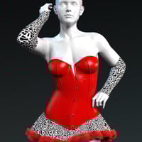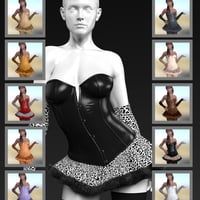 X-Fashion Animal Print Corset for Genesis 9 is a new animal print outfit with a corset, headband, stockings, skirt, and panties included in 10 colors.