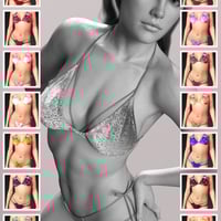 X-Fashion Chantelle Bikini for Genesis 9 available in 14 material colors, and 02 Saping Presets for the Bottom and Top.