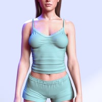 X-Fashion Early Sleep Set for Genesis 8, 8.1, and Genesis 9 includes 14 Iray Materials Presets and 2 Shaping Presets for Top and Bottom.
