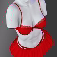 X Fashion Melody for Genesis 9 is a cute four-piece lingerie set consisting of a bra, panties, stockings, and a skirt and comes with 14 color options. Also comes with a custom material to Colorize and pick any color you like.