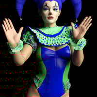It contains a Bodysuit, 02 Bracelets, 01 Collar, and 01 Hat for Genesis 8 and Genesis 9, with 20 Materials Prests, 02 makeup Options for G8 and G9