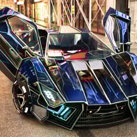 The detailed sci-fi vehicle comes with a gorgeous interior and intricate wheels. The doors are rigged to open up, the front wheels can steer and all wheels can spin. The car comes with 14 different material options for the body color.