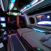 Still standing in long airport lines? Skip the lines and travel in style in this sci-fi cyberpunk themed Private jet.