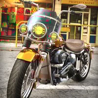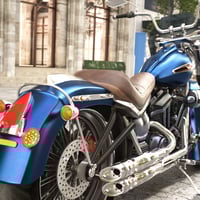 The motorcycle comes with 6 different paint color options and material options for the chrome or a matte color. There are presets to turn the lights on and off. The wheels are rigged to spin and there are sliders to steer the motorcycle left and right.