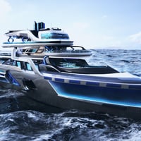 Cruise the high seas in this luxurious and modern futuristic yacht. Add the XI Futuristic Yacht to your collection today!
