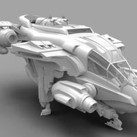 The detailed military-themed spacecraft comes with tilting engines and spinning blades for vertical lift-off. The spacecraft is small enough to land on small helipads. The rear ramp door can be opened and the landing gear can be retracted. There are 7 different color options for the main body color.