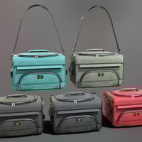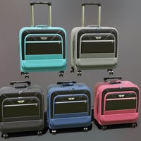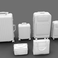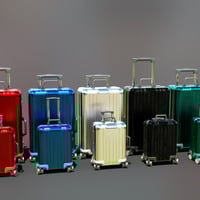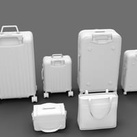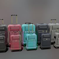 There are 7 props in the set and all the 5 suitcases are rigged to rotate the wheels and extend the trolley handles.