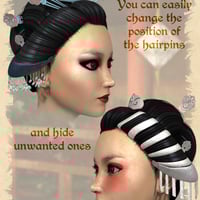 The hair has black and a grey textures and the decorations come in many color variations. Colors and styles were designed to match the Princess of Asia clothes and complete it to a perfect design.