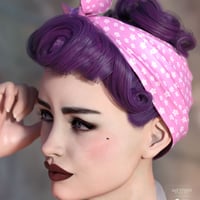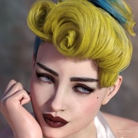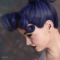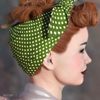 Yvette Hair is a morphing, polygonal model of a 1950's hairdo with scarf, a modern-retro take of the rockabilly style. The hair has an articulate rig for shaping and posing, with bones for the bangs/fringe curls, the ponytail curls, and scarf ends. Along with the style and movement morphs, ERC pose control dials help fit your figure poses beyond the 13 sample hair poses provided. The hair is fitted for Genesis 3 & 8 Female(s) (.DUF) with auto-conforming custom morphs for Daz Original characters.