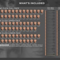 The set includes upper and lower face expressions, both as dials and one click, so you can mix and match these expressions to create endless possibilities.