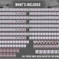This pose set splits into upper body, lower body, left arm, right arm, left leg, right leg, left hand, right hand, eye, and head pose partials, which can be mixed, matched, and paired with different partials for even more exciting possibilities.