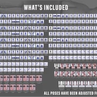 This pose set splits into upper body, lower body, left arm, right arm, left leg, right leg, left hand, right hand, eye, and head pose partials, which can be mixed, matched, and paired with different partials for even more exciting possibilities.