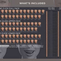 The set includes upper and lower face expressions, as dials and one click, so you can mix and match these expressions to create endless possibilities.