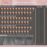 The set includes upper and lower face expressions, as dials and one click, so you can mix and match these expressions to create endless possibilities.
