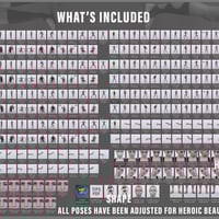 All poses have been carefully adjusted for the Heroic Beauty Shape G8F and the Heroic Beauty Shape Shape G9.