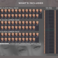 The set includes upper and lower face expressions, as dials and one click, so you can mix and match these expressions to create endless possibilities.