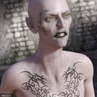 Zackyr is a fantasy character for Ollie 8. He comes with optional tattoos and colour options for his skin tone, tattoo, eyes, lips and nails. The materials are built on the Genesis 8 Male base UVs so can be used on any Genesis 8 Male character.