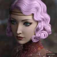 Zarah Hair is a polygonal model of a 1920's, 1930's finger waved bob with a headband and feathered fascinator. The hair has an articulate rig consisting of 4 bones for posing. Along with the style and movement morphs, ERC pose control dials help fit your figure poses beyond the 10 sample hair poses provided. The hair is fitted for Genesis 3 & 8 Female(s) (.DUF) with auto-conforming custom morphs for Daz Original characters.