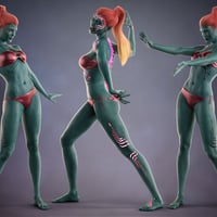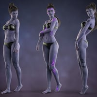 Zelara 8 comes in both a human and an alien version. When using the included alien skins or spine, Her render subD level should be set to 4 to take full advantage of the included HD morphs.