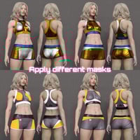As usual with our customization kits, several presets (16 premade styles) are included to get you started or just to be used as is.This style makes use of Daz Studio's 4-layers shader and includes 4 different texturable layers that can be customized by fabric, color, metalness, and shininess, as well as 5 additional layer mask combinations that help create completely different looks while using the same settings.