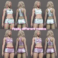 This style makes use of Daz Studio's 4-layer shader and includes 4 different texturable layers that can be customized by fabric, color, metalness, and shininess, as well as 5 additional layer mask combinations that help create completely different looks while using the same settings.