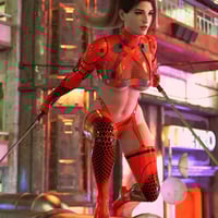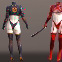 Be a Cyberpunk Ninja! With a striking fusion of futuristic design and lethal seductiveness. Choose from two materials: black or red.