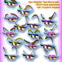 - NEW SmartPropped Toon BROWZ.. Left and right BROWZ BOTH have 12 built in morphs, for just about any expression you can think of!